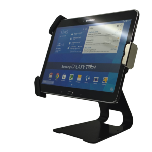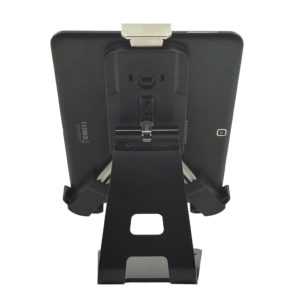 Perfect for use in the office, home, or retail space. It can be mounted on a desk, countertop, table, etc., or screwed to a wall. The tablet holder rotates 360°, allowing the tablet to be positioned in both portrait and landscape orientations. Thanks to the movable joint, the tablet can be rotated 180° – facing the customer or salesperson – without having to move the stand. This allows for smooth adjustment of the tablet’s tilt angle.