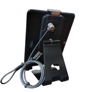 Attaching the cable locks the holder, preventing unauthorized access to the tablet.