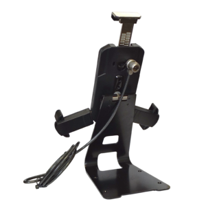 Attaching the cable locks the holder, preventing unauthorized access to the tablet.